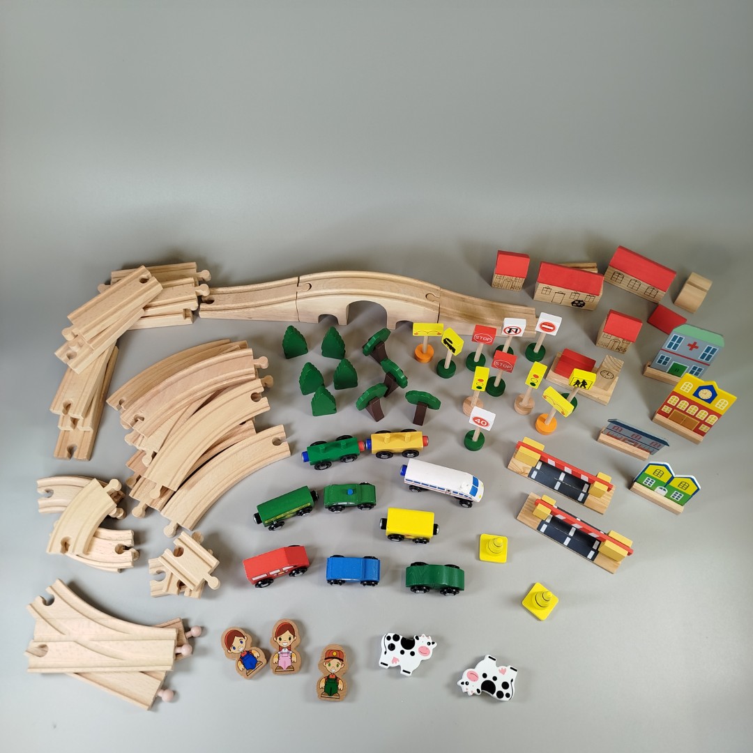 Großes Holzeisenbahn-Set mit Zügen and Zubehör - Description
