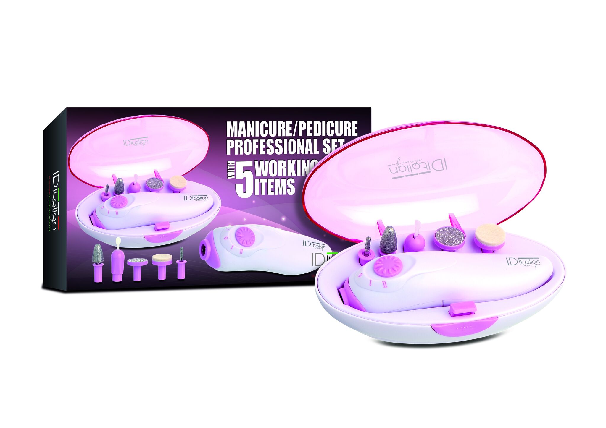 Manicure and pedicure set with 5 interchangeable elements to keep your nails always looking perfect.
