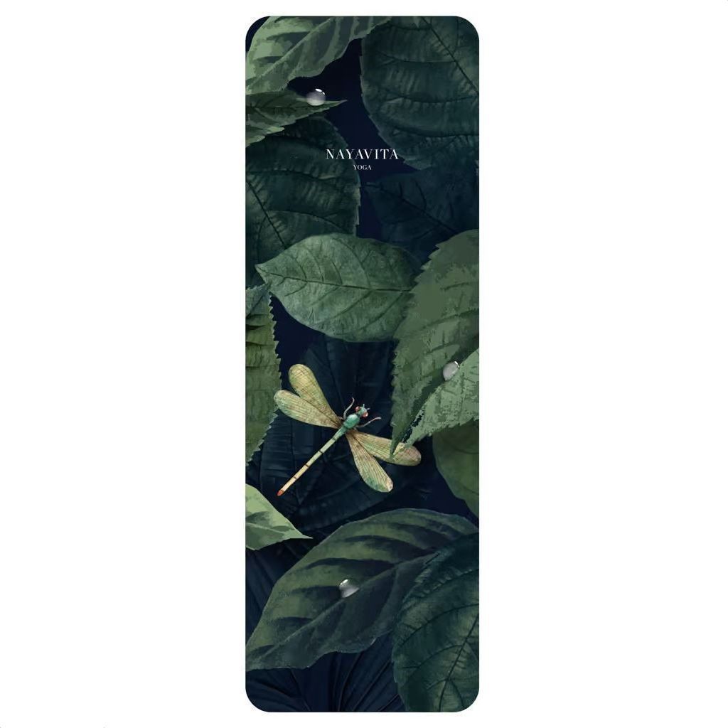 Featuring a symbolic dragonfly, Jungle is a comfortably cushioned, eco-friendly and anti-slip yoga mat made from natural rubber and decadently soft upcycled vegan suede made from ocean-bound plastic bottles.