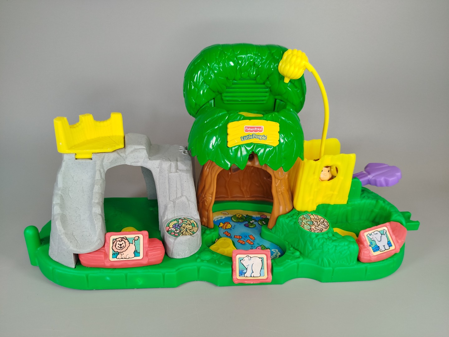 Hol dir das farbenfrohe Little People Spielset Animal Zoo und bring Spaß und Abenteuer ins Kinderzimmer! Dieses Set enthält eine interaktive Zoo-Spielkulisse mit mehreren auditiven Spielfunktionen, einer Vielzahl von Figuren, darunter verschiedene Tierfiguren wie Zebras, Giraffen und ein Dinosaurier und mehrere Little People Figuren, die ein lebhaftes Rollenspiel ermöglichen. Zauberhafte Details laden zum Entdecken und Spielen ein. Gib diesem Spielzeug ein neues Zuhause und erlebe strahlende Kinderaugen! Das Set enthält zudem verschiedene Zaunteile und ein rotes Auto. Das farbenfrohe Little People Spielset Animal Zoo kommt in gebrauchtem Zustand, weist also Gebrauchsspuren auf. Hier und da ist die Farbe abgerieben oder es sind nicht entfernbare Flecken vorhanden. Hinweis: Empfohlen für Kinder ab 1 Jahr.