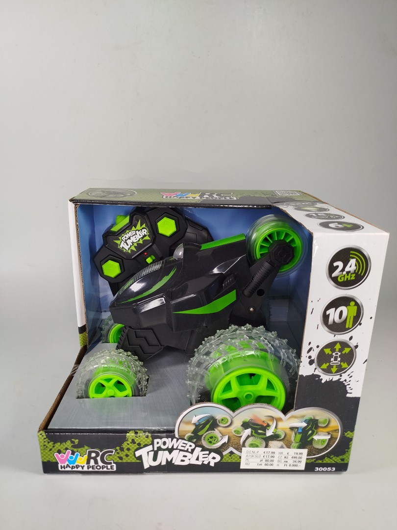 Hol dir das RC-Auto Power Tumbler von Happy People, um das ultimative Spielerlebnis zu erleben! Dieses ferngesteuerte Auto überzeugt mit seiner robusten Bauweise und coolen 360-Grad-Drehungen, ideal für aufregende Stunts. Gib diesem Spielzeug ein neues Zuhause und erleben Sie strahlende Kinderaugen! Das Set enthält ein RC-Auto und eine Fernbedienung. Mit seiner 2,4 GHz-Fernsteuerung ermöglicht es eine präzise Steuerung und schnelle Reaktionen. Die großen Gummi-Reifen bieten extra Grip für waghalsige Stunts, Drehungen und Überschläge. Das Set kommt in der Originalverpackung. Hinweis: Benötigt Batterien (nicht enthalten).