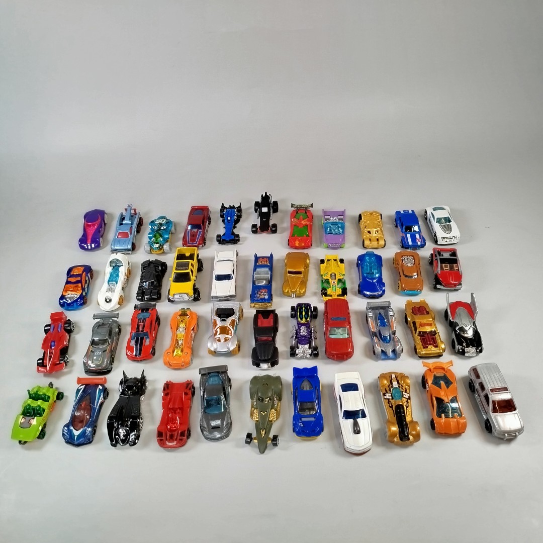 Dieses umfangreiche Hot Wheels Spielzeugauto-Set enthält ca. 45 verschiedene Fahrzeuge in unterschiedlichen Designs, Farben und Modellen. Perfekt für Sammler, Rennbahn-Fans oder kreative Autospiele. Die Autos bestehen aus robustem Metall und Kunststoff und bieten langlebigen Spielspaß. Hinweis: Die Fahrzeuge befinden sich in gebrauchtem Zustand mit leichten Gebrauchsspuren. Sicherheitshinweis: Nicht für Kinder unter 3 Jahren geeignet, da Kleinteile verschluckt werden können.