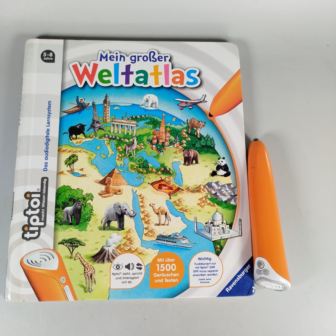 Mit dem interaktiven tiptoi Buch „Mein großer Weltatlas“ entdecken Kinder im Alter von 5 bis 8 Jahren die Welt spielerisch. Über 1.500 Geräusche, Texte und interaktive Elemente bringen Kontinente, Länder, Tiere und Sehenswürdigkeiten zum Leben. Der mitgelieferte tiptoi-Stift erkennt die Inhalte und ermöglicht spannende Lernspiele, Quizfragen und Hör-Erlebnisse.