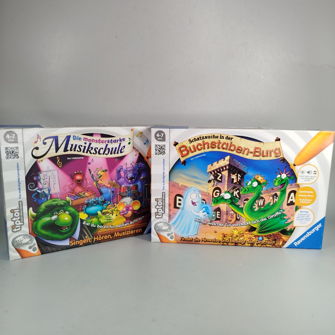 Hol dir das spannende Spiele-Set bestehend aus Die monsterstarke Musikschule und Schatzsuche in der Buchstabenburg von Tiptoi und fördere auf spielerische Weise die sensorischen und kognitiven Fähigkeiten deines Kindes! Dieses Set enthält alles, was kleine Entdecker und Musikliebhaber benötigen, um in die Welt der Musik und der Buchstaben einzutauchen. Die Spiele sind ideal für Kinder von 4 bis 7 Jahren und fördern sowohl das musikalische Gehör als auch die Sprachentwicklung. Beide Spiele bieten interaktive Erlebnisse mit dem Tiptoi Stift und begleiten dein Kind durch abenteuerliche Lernszenarien. Wichtiger Hinweis: Der Tiptoi Stift ist nicht im Lieferumfang enthalten. Das Set wird in einem ordentlichen gebrauchten Zustand ohne Originalverpackungen geliefert. Gib diesen unterhaltsamen und lehrreichen Spielen ein neues Zuhause und erlebe strahlende Kinderaugen! Achtung: Nicht für Kinder unter 3 Jahren geeignet, da Kleinteile verschluckt werden können.