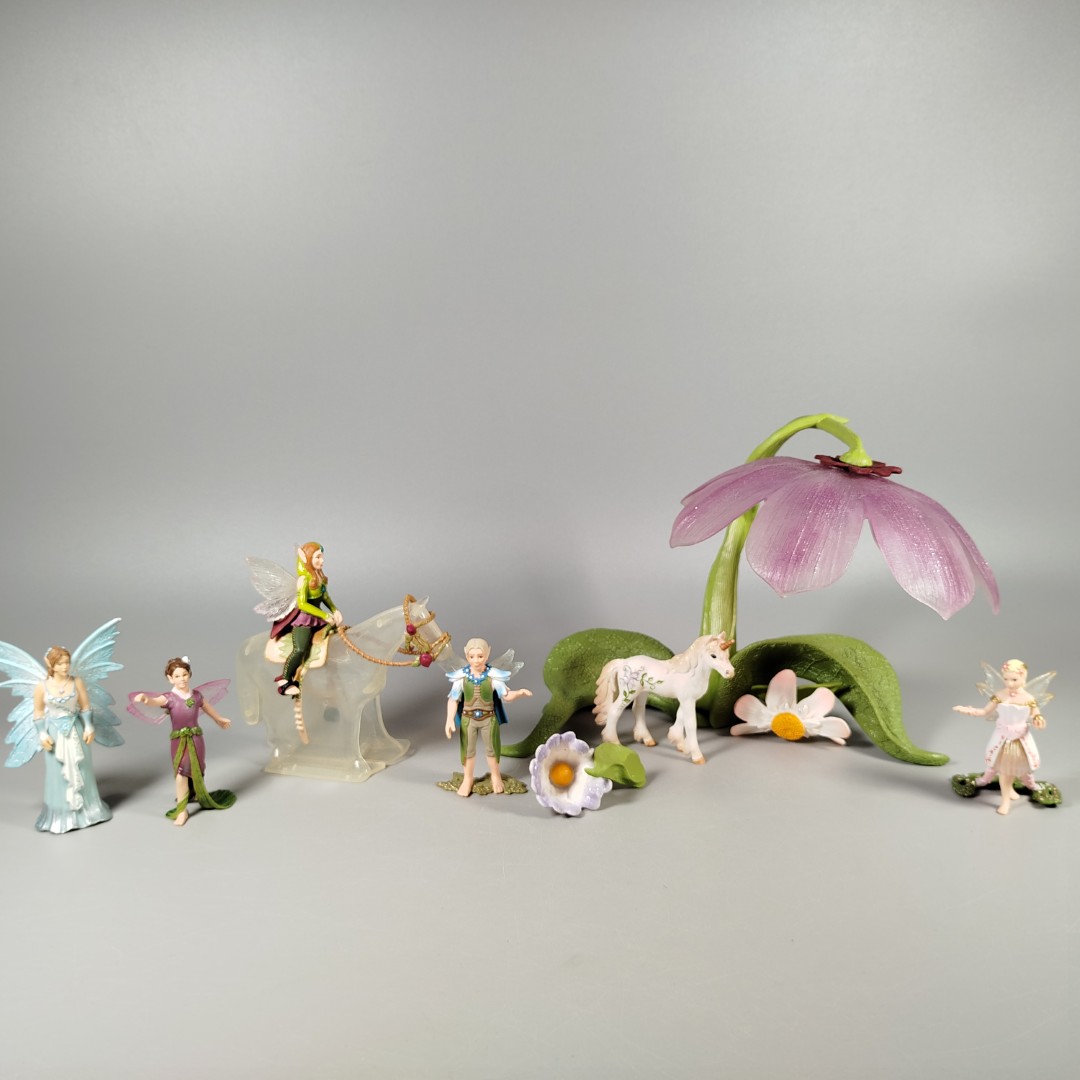 Hol dir das Schleich Feenwelt-Set und bring Magie ins Kinderzimmer! Dieses Set enthält 6 handbemalte Feenfiguren in verschiedenen Posen mit einzigartigen Details wie Schmetterlingsflügeln und pastellfarbenen Kleidern. Ein Highlight ist die halbtransparente Fantasiefigur, die von einer der Feen geritten wird. Ergänzt wird das Set durch ein kleines Einhorn und florale Szenerie aus großen, stilisierten Blumen und anderen dekorativen Stücken, die eine märchenhafte Atmosphäre schaffen. Gib diesem Spielzeug ein neues Zuhause und erleben Sie strahlende Kinderaugen!