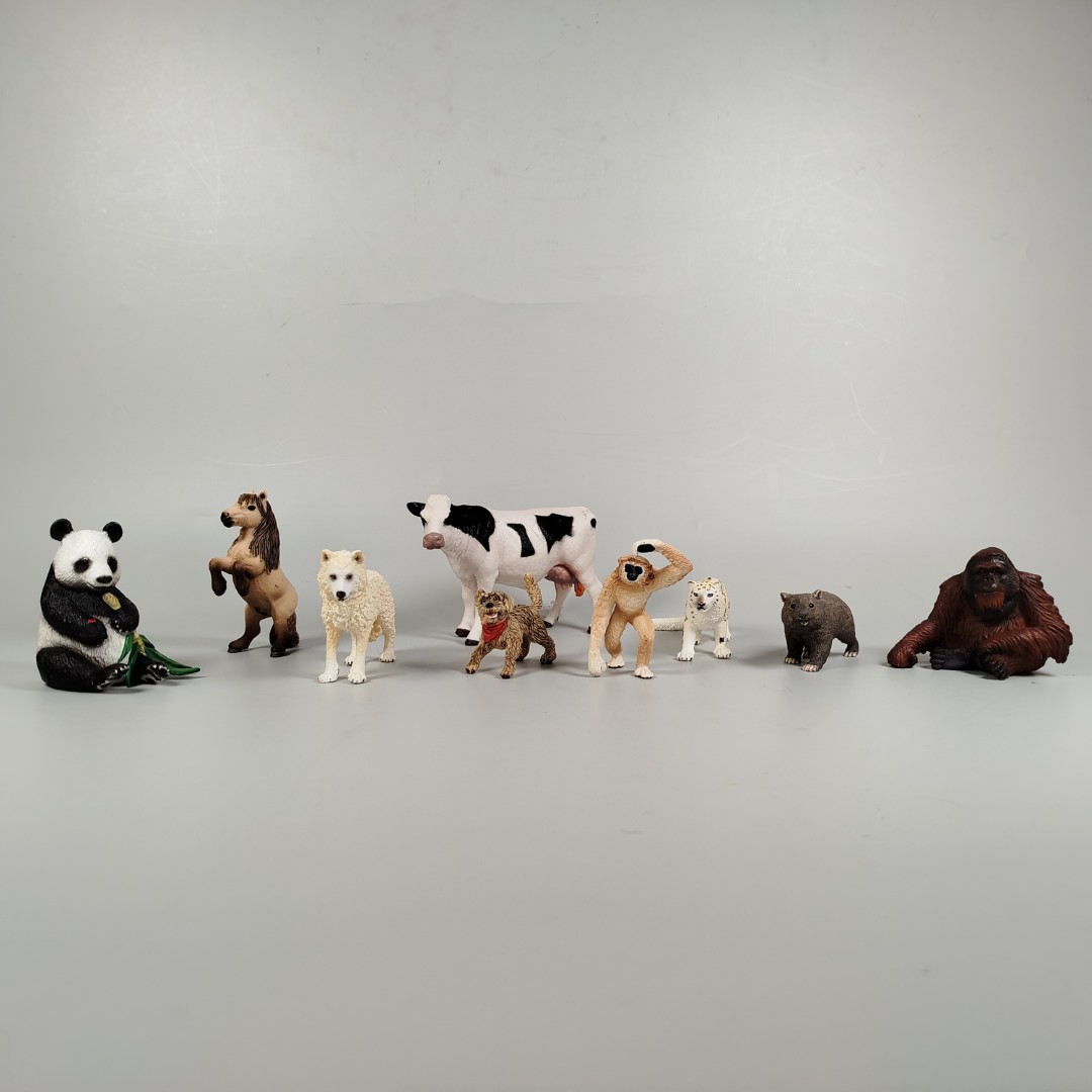 Dieses Schleich Tierfiguren-Set umfasst 9 detailgetreue Modelle: einen Panda, ein Pferd, eine Kuh, verschiedene Affen (Orang-Utan, Gibbon), Raubkatzen (Leopard, Schneeleopard), einen Hund, ein Wombat und weitere Tiere. Die Figuren sind ideal für Kinder, die Tiere lieben, oder als Sammlerstücke geeignet. Achtung: Nicht für Kinder unter 3 Jahren geeignet, da Kleinteile verschluckt werden können.