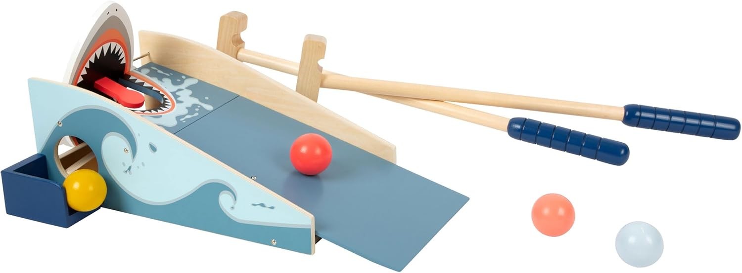 Unsere refurbished Small Foot Minigolf Shark Attack-Produkte waren Rückläufer aus Vermietungsverträgen, Testprodukte von Herstellern oder Retouren von Endkund:innen und sind dadurch deutlich günstiger als ein Neukauf.