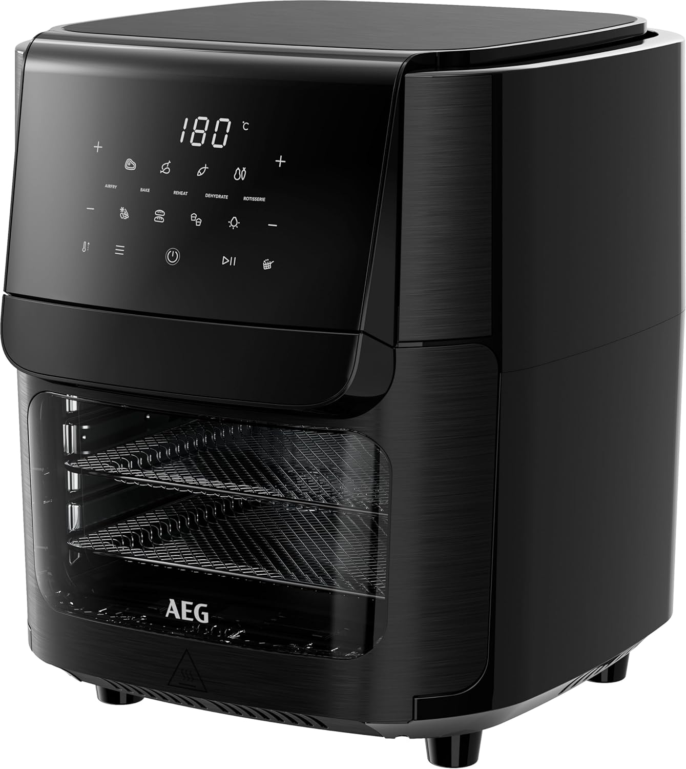 5 Programme bieten maximale Flexibilität. Die refurbed AEG AAF12B Heißluftfritteuse XXL 8000 - Multi-Combo bietet Platz für große Portionen, mit Funktionen wie Heißluftfrittieren, Backen, Aufwärmen, Dörren und Grillspieß. Durch das Glasfenster hast du den Garvorgang im Blick, ohne die Tür öffnen zu müssen.