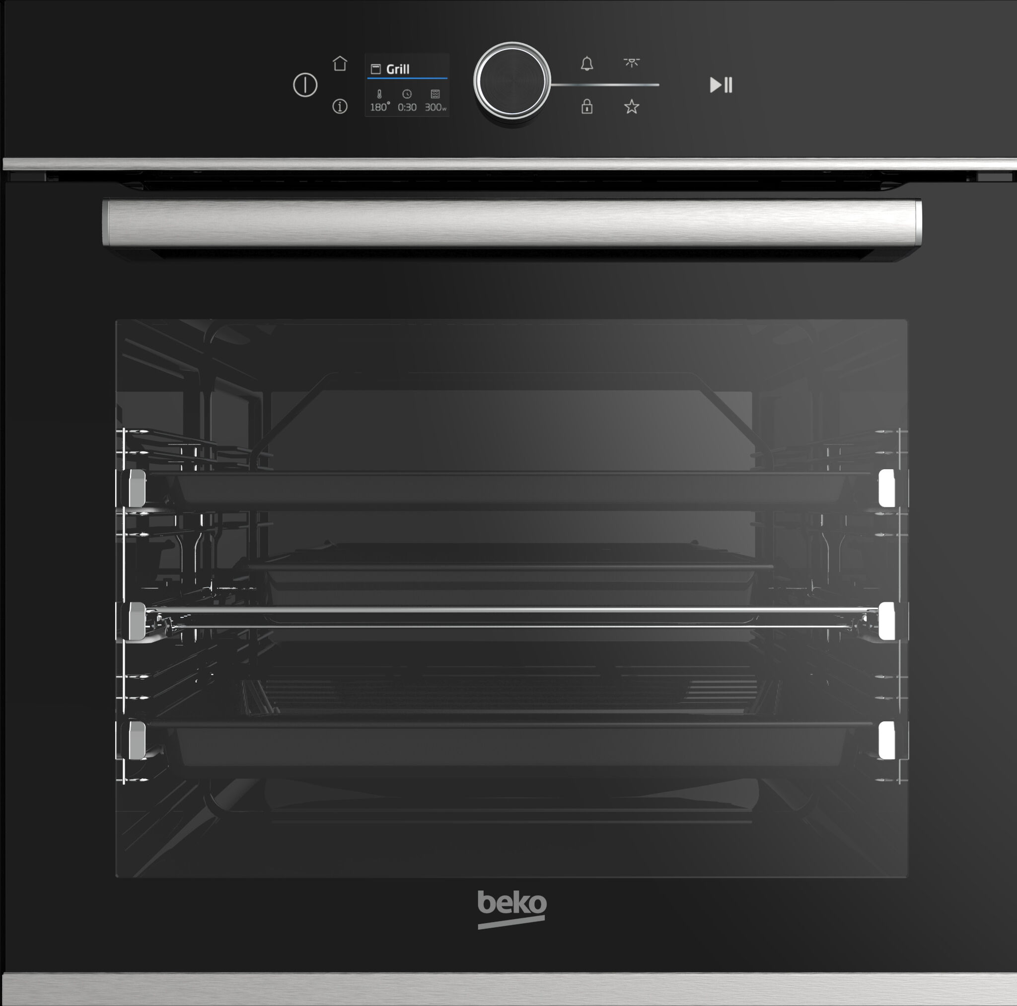 Das refurbed Beko BBIM13500XPSW Multifunktionsbackrohr / Pyrolyse mit 15 Kochfunktionen, 2,4” TFT-Display mit Touchdisplay und Drehknopf.