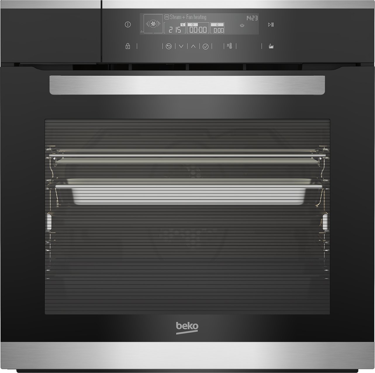 Der refurbed Beko BID15501XDS Kombidampfgarer mit 17 Kochfunktionen und LED Display.