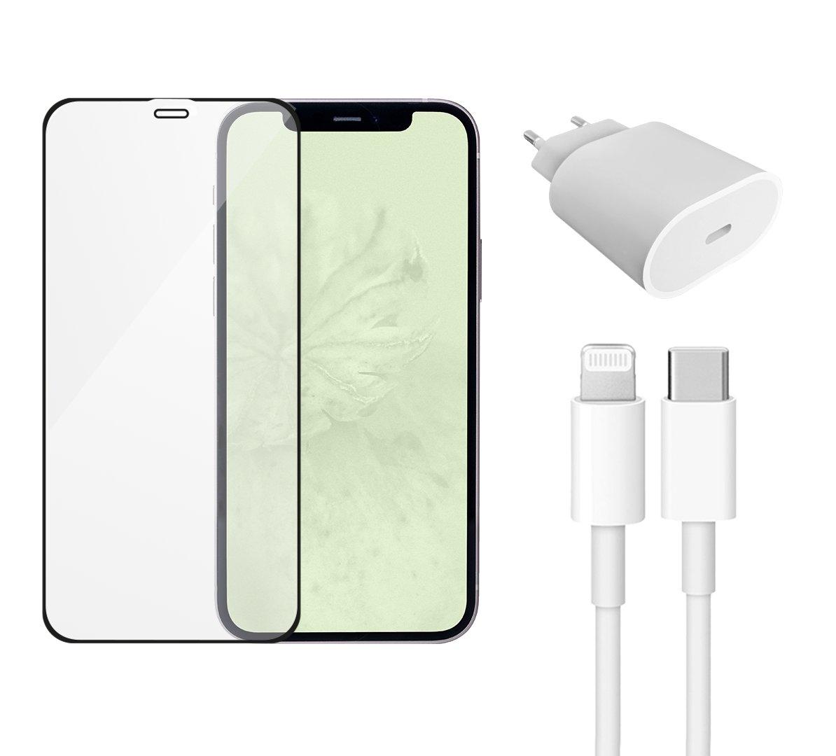 • Schnellladegerät (20W) + Kabel (Lightning) & Displayschutz | iPhone 12 mini 1
