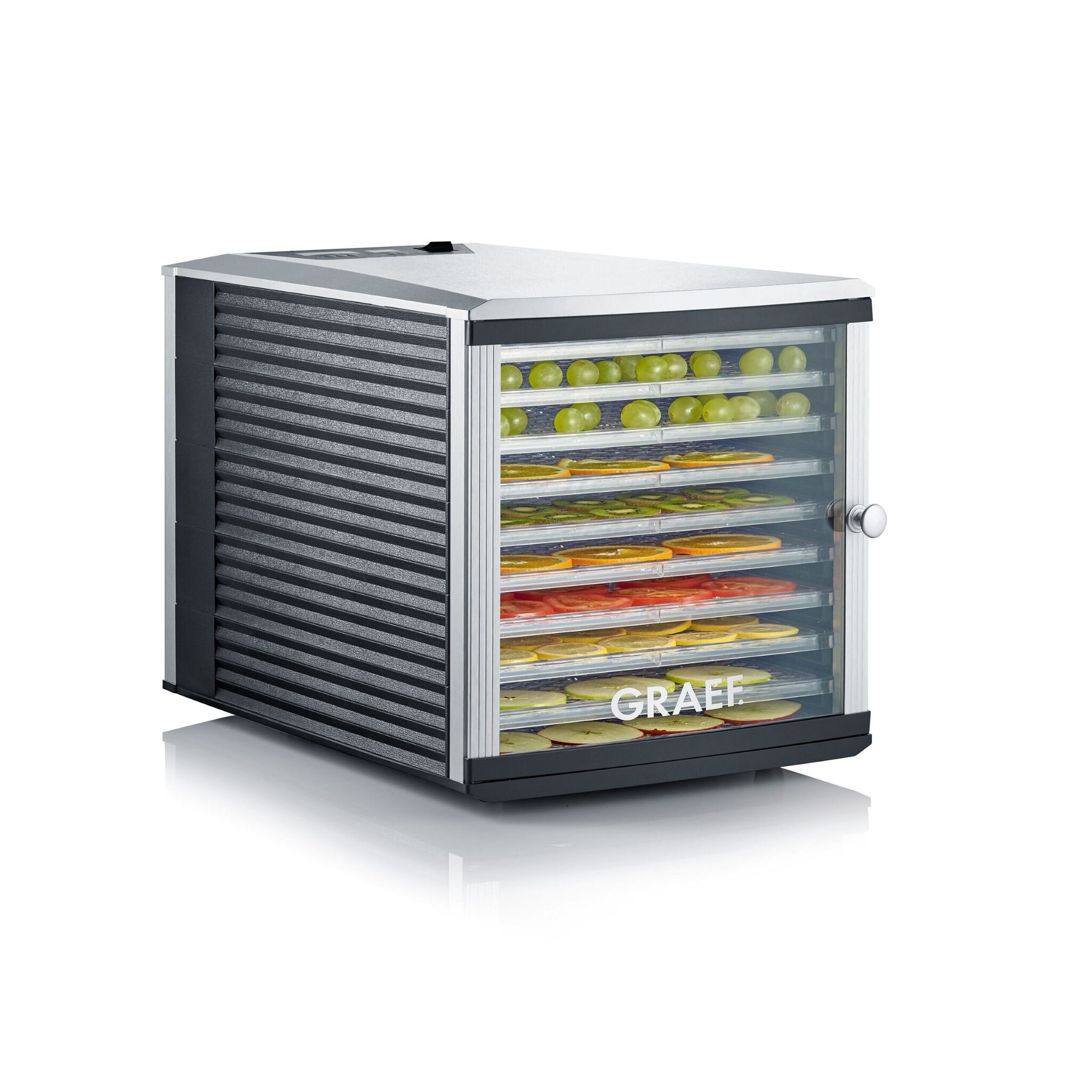 Das Dörren ist eine bewährte Methode, um Lebensmittel länger haltbar zu machen. Der refurbed GRAEF Dörrautomat DA510 trocknet eine Vielzahl an Lebensmitteln wie Obst, Gemüse, Fleisch und Nüsse und ermöglicht sogar die Herstellung von selbstgemachtem Joghurt. Dank der Dry Balance Technology erfolgt die Trocknung mit dem Dörrgerät besonders gleichmäßig, wodurch wertvolle Nährstoffe erhalten bleiben. Die großzügigen Dörrgitter ermöglichen das gleichzeitige Dörren verschiedenster Lebensmittel auf bis zu 10 Ebenen. Innerhalb weniger Stunden entstehen so leckere und gesunde Snacks für jeden Geschmack, von knackigem Obst für Müsli bis hin zu würzigen Jerkies aus Fleisch oder Leckerlis für Haustiere. Der GRAEF Dörrautomat spart Zeit, Platz und Geld und ist ein unverzichtbarer Helfer in jeder Küche, die Wert auf Nachhaltigkeit und guten Geschmack legt.