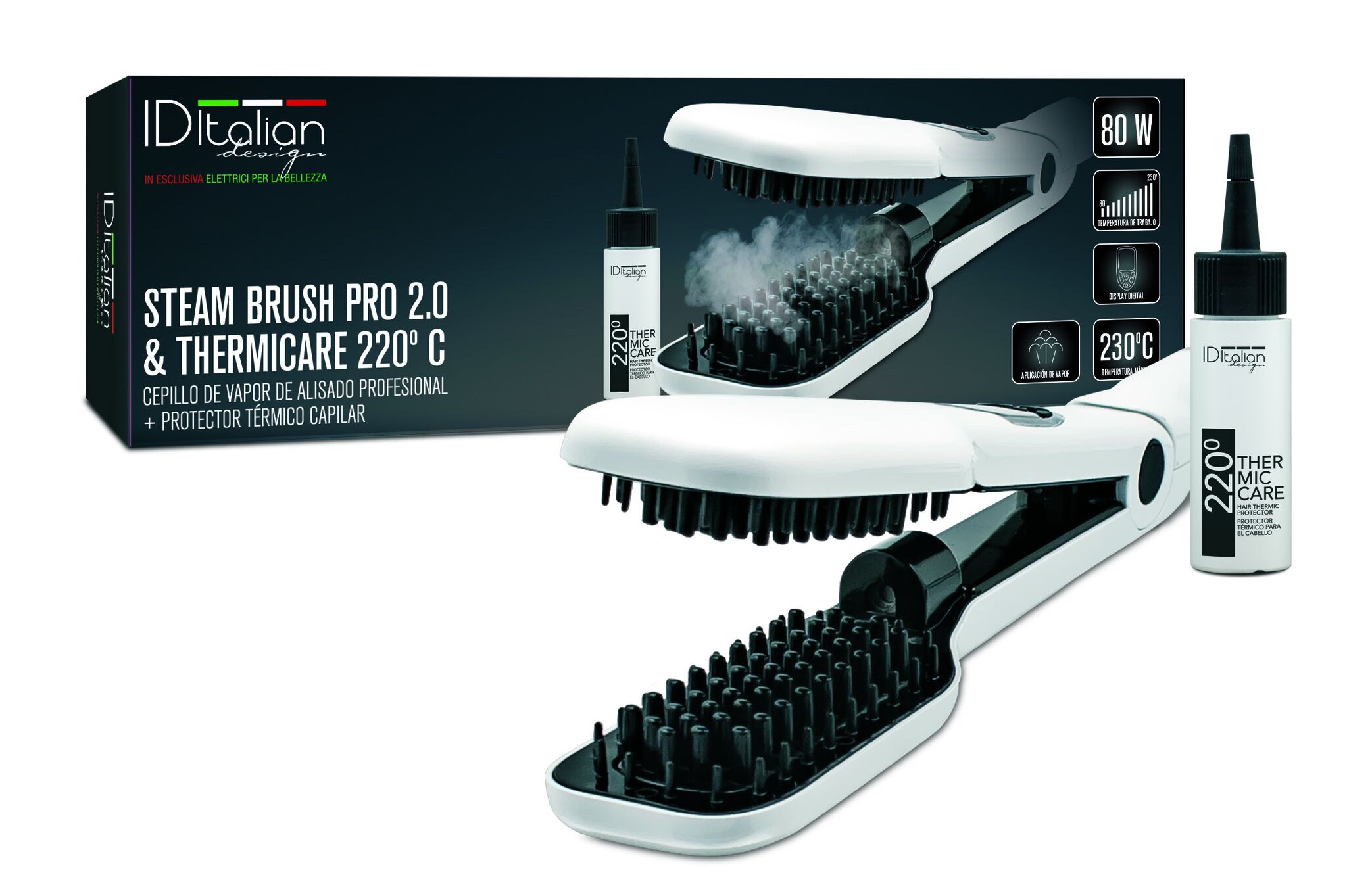 Professionelle Glättungsbürste mit exklusiver Dampfextraktionstechnologie. Dank des digitalen Displays kann nicht nur die Temperatur der Bürste, sondern auch die Dampfzufuhr direkt auf das Haar gesteuert werden.