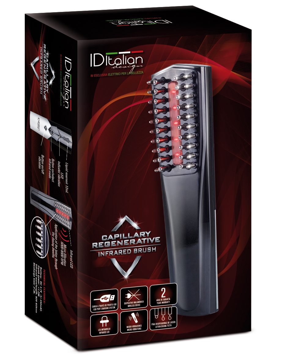 Der Kamm ist mit einem 12-ml-Behälter ausgestattet, den man mit einer Haarbehandlung füllen kann. Die Behandlung wird über die speziellen Zinken auf Haar und Kopfhaut verteilt.