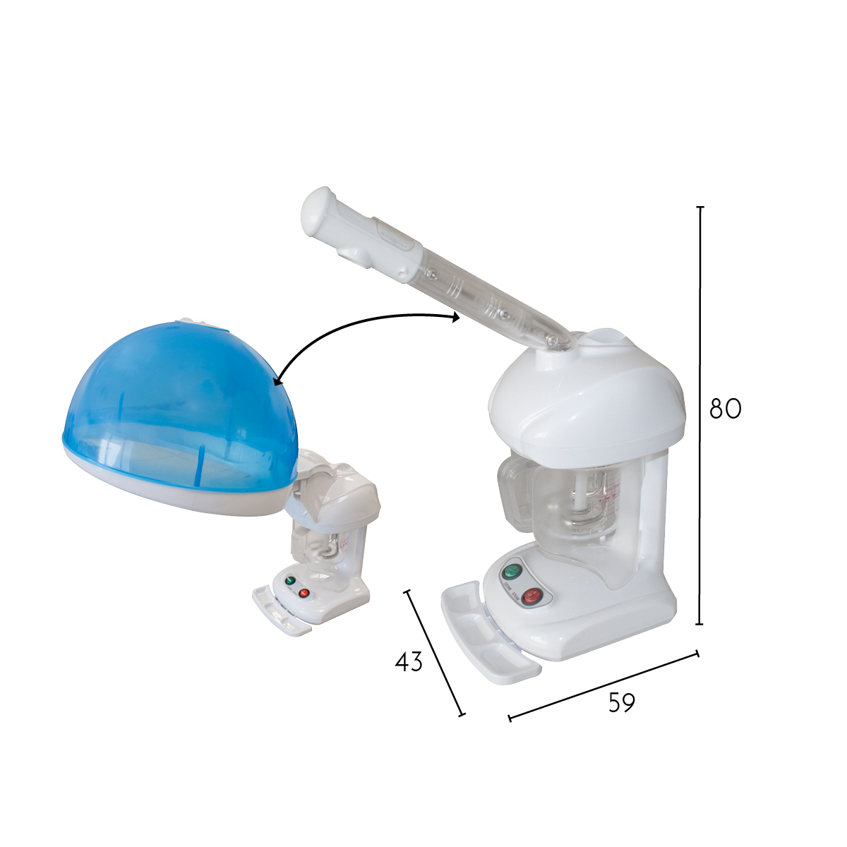 Kompakt, ideal für die Anwendung auf kleinem Raum für Haare und Gesicht. Es hat auch eine Ozonfunktion für eine bessere Hygienekontrolle bei Behandlungen und Reinigung.