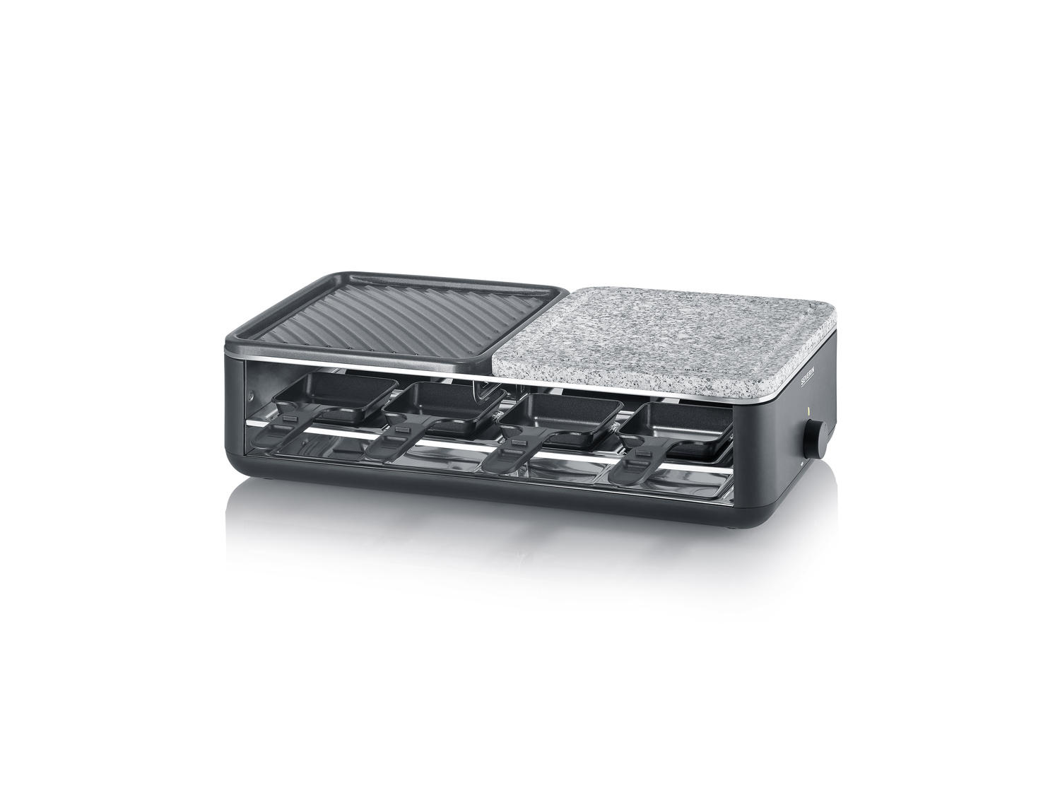 Der refurbed Severin RG 2366 Raclette Grill mit 8 antihaft-beschichteten Pfännchen mit Verstaufunktion per Klick. Dazu eine Kombination aus Naturstein und hochwertige Grillfläche mit Keramikbeschichtung perfekt für Fleisch, Fisch oder Gemüse. Inklusive Parkebene zum Abstellen von heißen oder unbenutzten Pfännchen. Variable Temperatureinstellung mit LED-Beleuchtung und extra tiefe Pfännchen von 20mm für eine optimale Befüllung.