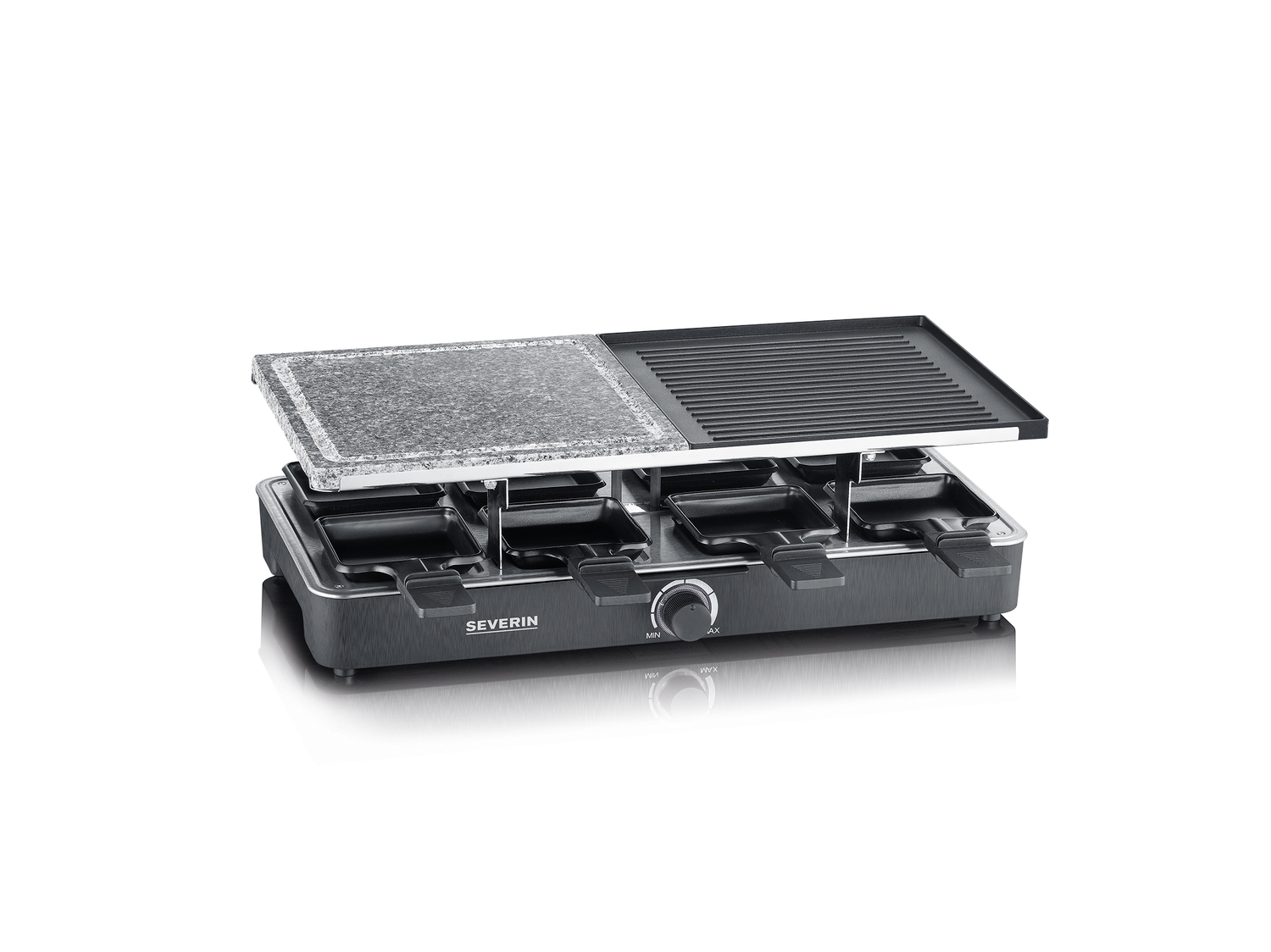 Der refurbed Severin RG 2376 Raclette-Grill mit Naturgrillstein und Grillplatte.