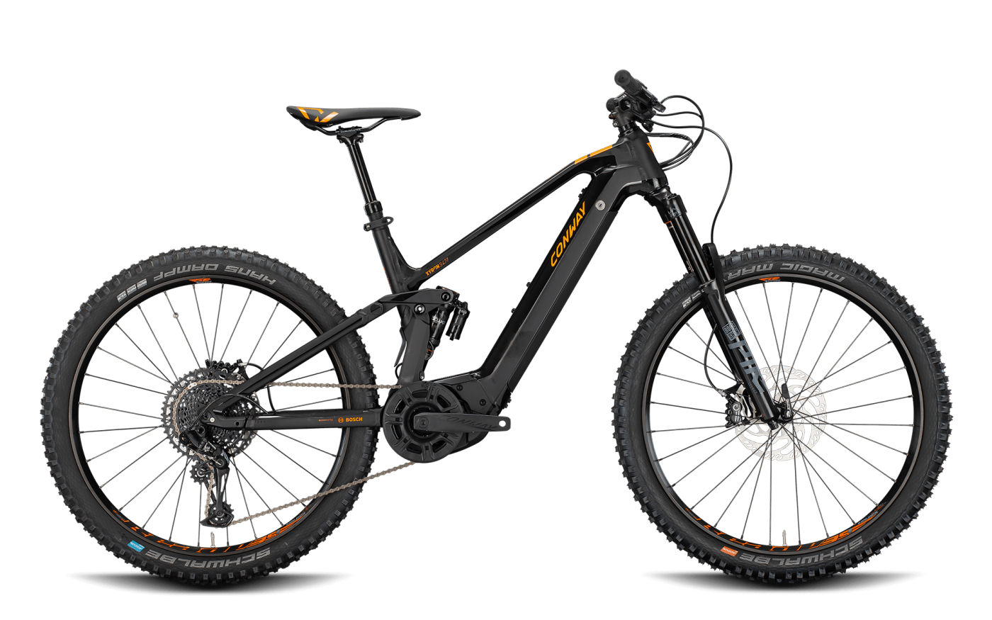 Unser XYRON E-Fully legt nicht nur den Grundstein für eine neue Generation an E-Bikes. Es zeigt, was möglich ist. Möglich mit Know-How, Erfahrung, Leidenschaft und dem Willen, ein herausragendes Bike zu konstruieren. Als Carbon- oder Aluminium-Version deckt es eine große Bandbreite an Anforderungen und Preispunkten ab. Dabei teilt es sich das gleiche Layout, die gleichen Ansprüche an Geometrie und Fahrverhalten. Die Carbonversion ist 100% Carbon: Hinterbau, Hauptrahmen und Wippe. Clean aufgeräumte Züge, von aussen unsichtbare Lagerung und volle Systemintegration sind hier nur einige der Highlights. Beim Aluminiumrahmen zusätzlich Serie: Eine Aufnahme für Fahrradständer, um den Komfortgedanken und die Nutzerfreundlichkeit weiter zu optimieren.