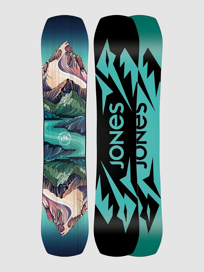 Der FCS™ Control Core ist ein doppelt verdichteter Vollholz-Kern mit Paulownia und Pappel-Stringern. Das Biax Fiberglas sorgt für einen fehlerverzeihenden, verspielten Ride. Bio Resin ist pflanzenbasiert und wird anstatt Petroleum-basiertem Epoxy verwendet und macht so die Produktion noch etwas umweltfreundlicher. Das Material der gesinterten 8000 Base ist aus UHMW-PE und Karbon hergestellt. Es ist schnell, leicht zu reparieren und nimmt Wachs hervorragend auf. Freeride Freestyle Insert Pack erlaubt dir das Board mit einem mittigen Stance oder mit Set Back zu fahren. Das ECO-Plastik Topsheet wird aus Rizinussamen hergestellt. Dieses Biomaterial ist extrem leicht, resistent gegen Kratzer und Brüche, sowie wasser - und schneeabweisend. Jones Boards werden mit überdimensionalen recycelten Stahlkanten für zusätzliche Haltbarkeit und eine verbesserte, nachhaltige Produktion gefertigt. Der Gummi zur Dämpfung der Kanten und das ABS in den Sidewalls wird aus 100 % recyceltem Material hergestellt. Alle Jones Boards sind ‘Ready to shred’ und werden mit natürlichem WEND Wachs im Werk gewachst, sowie an Tip und Tail leicht abgerundet, um gleich nach dem Shop auf den Berg gehen zu können. Um eine höhere Materialausbeutung zu erzielen, tauscht Jones die Farben der Base aus und reduziert dadurch Abfall, der in der Produktion entsteht.