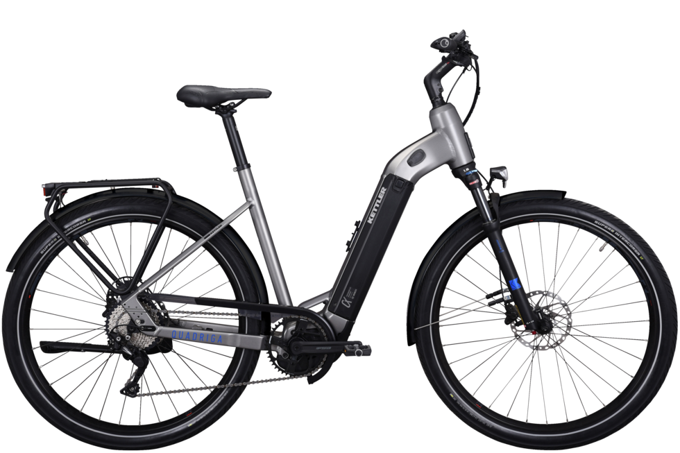 Die beiden innovativ integrierten PowerTube-Akkus, formschön ins Unterrohr integriert, ist das QUADRIGA DUO CX10 in Sachen Reichweite kaum zu schlagen. Die Speichereinheit mit 1250 Wattstunden versorgt den starken Bosch Performance Line CX; die Motorsteuerung erfolgt über das bewährte Intuvia-Display. Für hohen Komfort sorgen die 100 mm Federgabel und weich rollenden 29 Zoll Reifen. Die hochwertige 10-Gang Kettenschaltung sowie kräftig verzögernde Scheibenbremsen kommen von SHIMANO; ebenfalls an Bord ist ein heller Frontstrahler mit 70 Lux.
