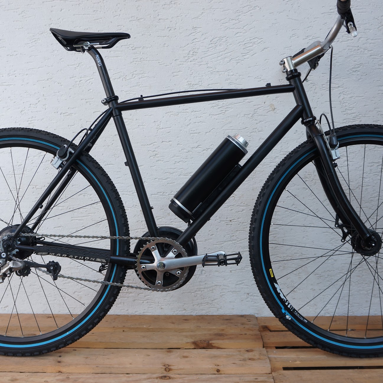 Dieses Fahrrad kann universell für Alltag und Reise genutzt werden. Die Modulreifen erlauben verschiedene Profile (auch Spikes). Gewinde für Schutzbleche, Gepäckträger und Flaschenhalter sind vorhanden.